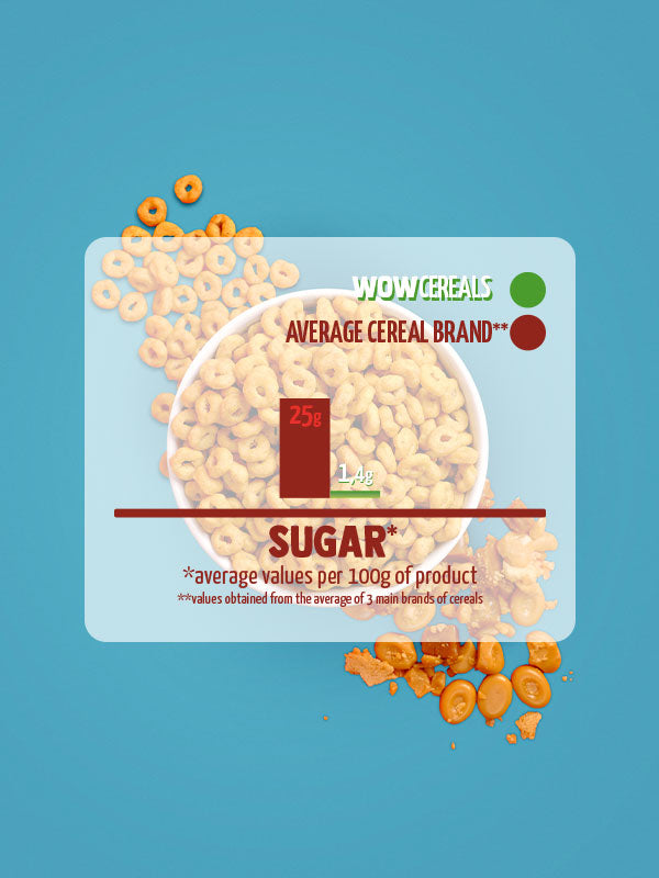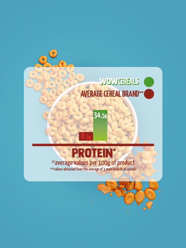 Los nuevos WOWcereals tienen un alto contenido en proteínas, muy superior al de otras marcas, además de ser fuente de fibra y tener menos de la mitad de carbohidratos que los cereales de desayuno tradicionales.